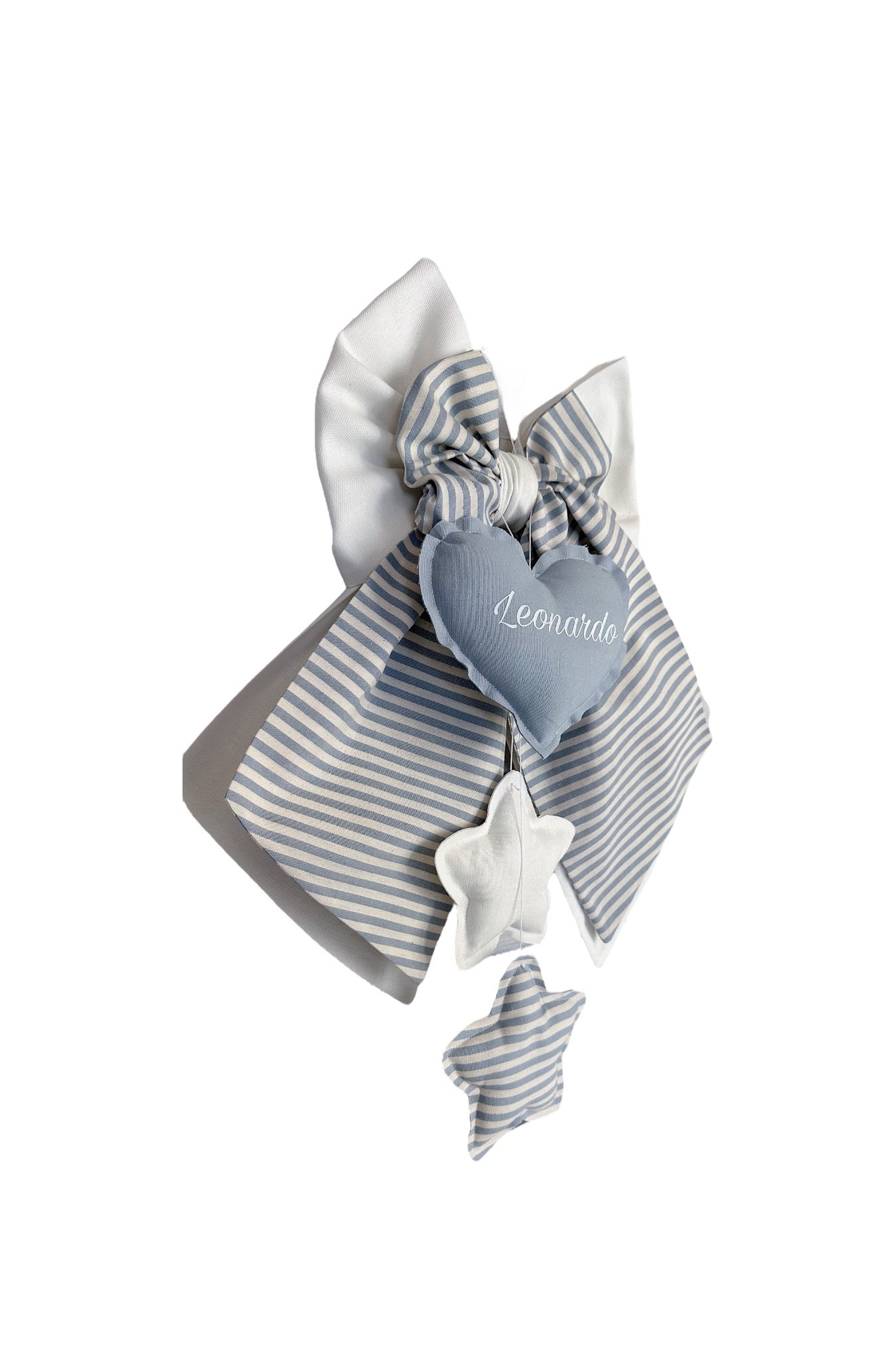FIOCCO NASCITA bianco latte e riga azzurro cielo