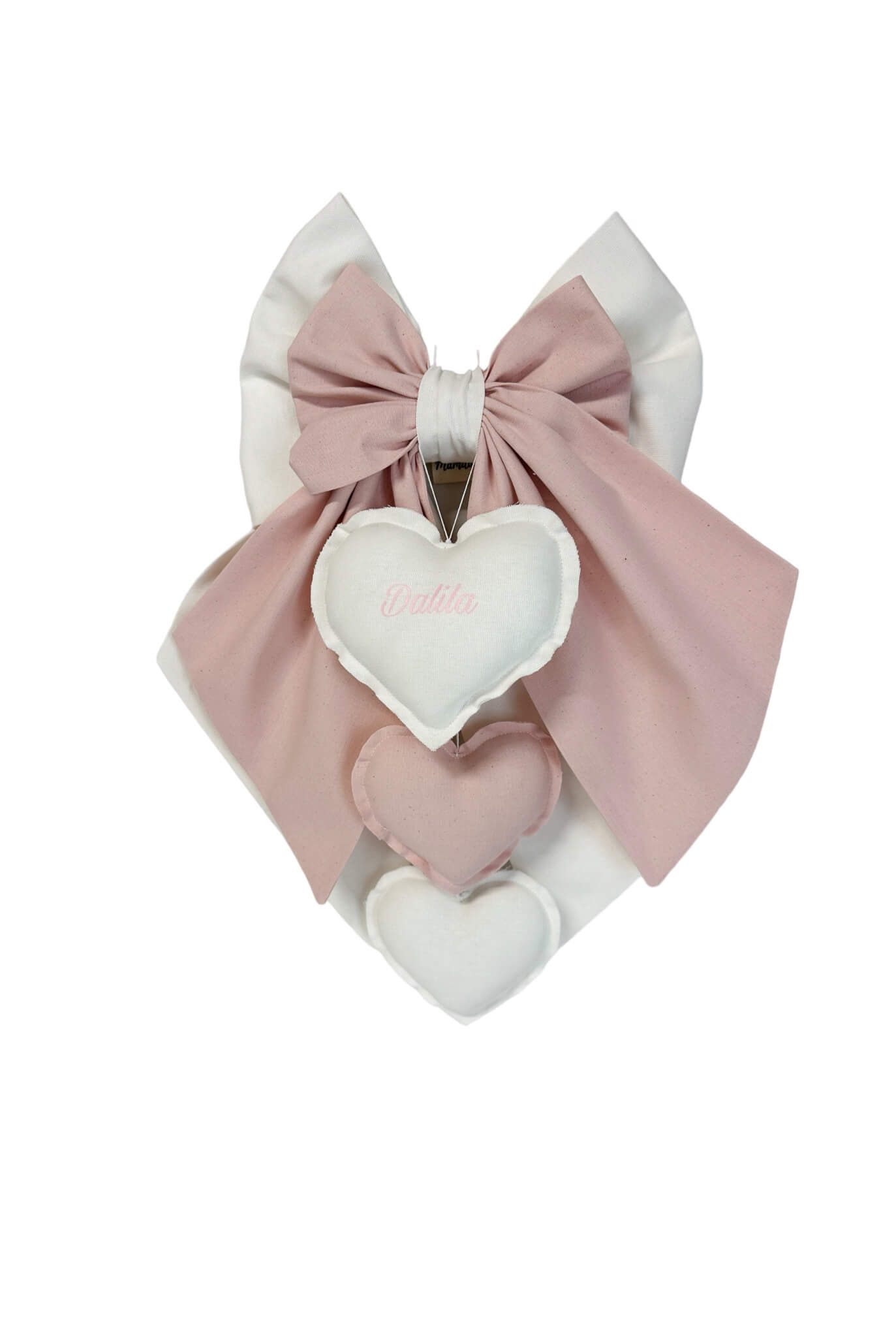 FIOCCO NASCITA bianco latte e rosa cipria cuori