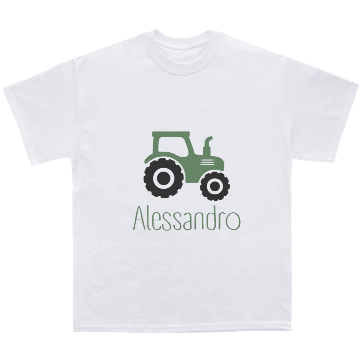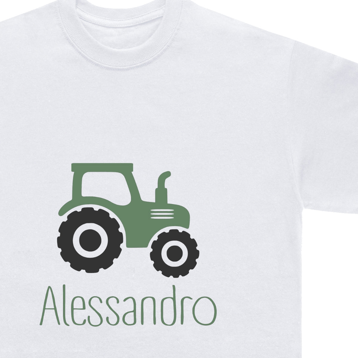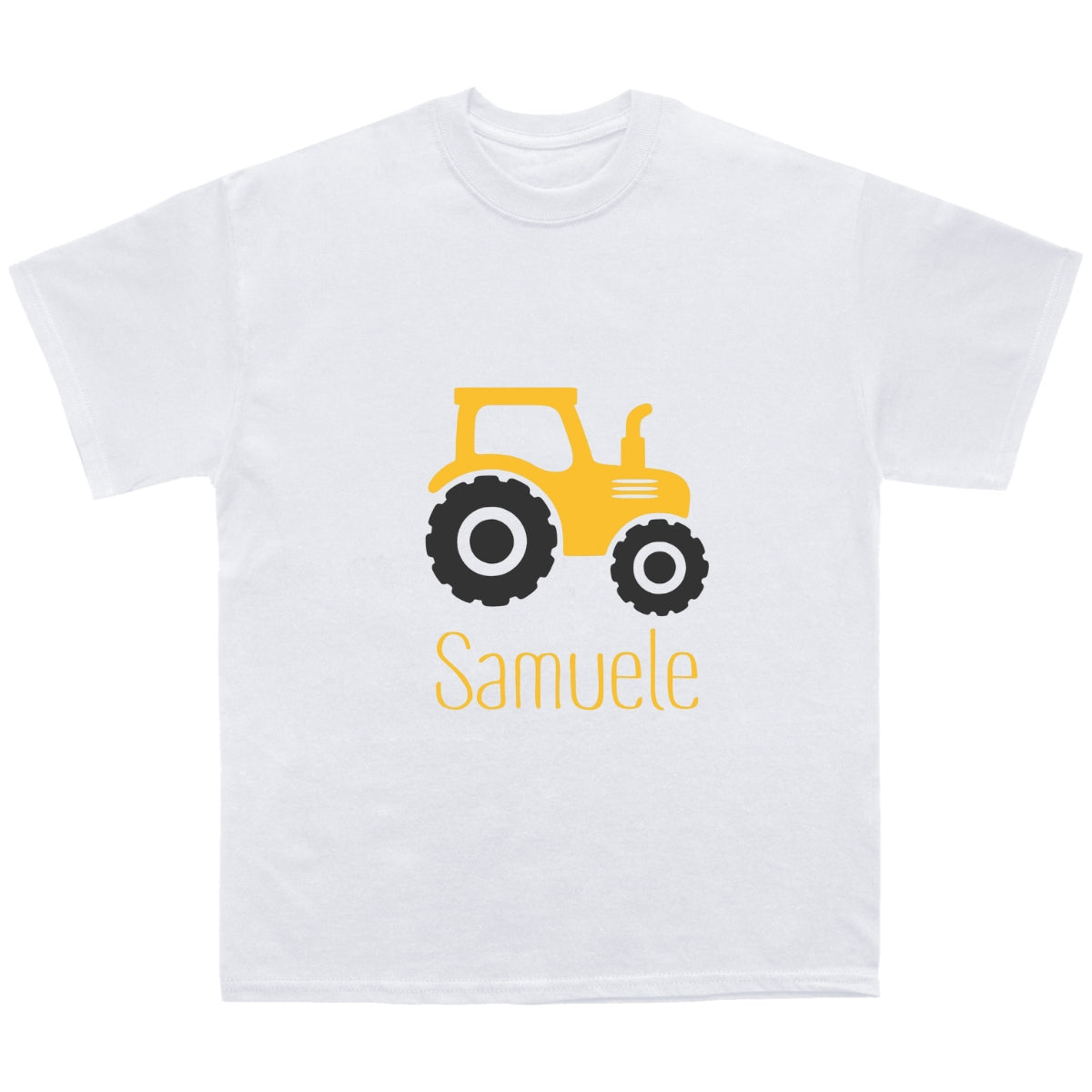 T-shirt bimbo con trattore, personalizzata con il nome.